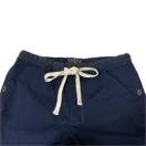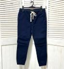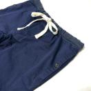 フロントポケットとバックパッチポケットにはオリジナルボタンを採用。 ウエストのドローコードは肉厚のコットンチューブを使用し、裾部分はスポーティなリブ使い、膝部分はダーツを設けた立体的な仕様です。