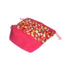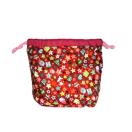 ・底マチ幅を広くとってるので紐を締めるとまるっこくなってかわいいです。底マチと紐通し部分は赤ラメストライプ生地をあわせました。