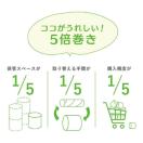 1ロールの長さなんと5倍。超ロングタイプのトイレットペーパー。ずっと長持ち、たっぷり使える。