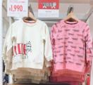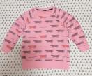 ストライプの猫柄が特徴的なピンクの暖かそうなトレーナー。厚みがあります。