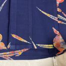 濃紺地に大胆な構図で菖蒲が染められた美しい浴衣です。