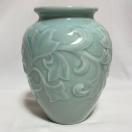 未使用 有田焼 華山造 花瓶 青磁 草華蔓草模様 木箱入