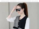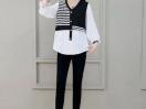 ボーダーの配置が上下で異なるデザインが特徴で、その配置効果によってスタイルアップ効果を期待することができます。