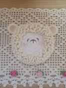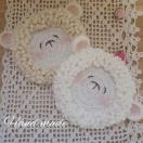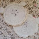 ★アクリル毛糸で編んだ、モコモコひつじさんの大きめコースター2枚組です。