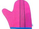3、石鹸や液体を加えずに、ぬるま湯を使用しこのバスグローブで体を洗います。