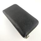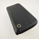 高級感あふれるBVLGARIのブラックレザー長財布、ジッパー式で機能的。