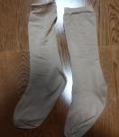 ナイロン製のベージュのハイソックス、快適なフィット感。
