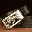 【メンズ】ヴィンテージ風 カウハイド ベルト オートマチックバックル - 鮮やかなトラ柄、ゴールドトーンの金具、丈夫なレザーテクスチャ - ジーンズ、作業パンツ、カジュアルウェアに - ユニークな唐草模様、ジーンズ用ベルト、作業着アクセサリー