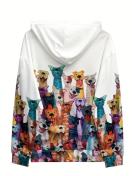 Dogs プリント パーカー カジュアル 長袖 ドロップショルダー パーカー 婦人服