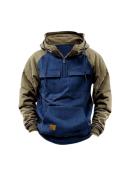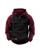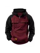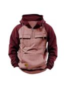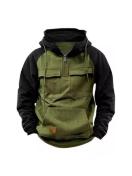 メンズ&アメリカンスタイル スタンドカラー&ボタンフロント付きフードジャケット - マルチポケット アウトドア 冬コート、ルーズフィット カジュアル ボタン付きジッパーブレザー、寒い天候用 (無地)