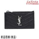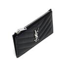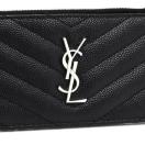 ■詳細説明/【人気商品】、シルバーYSLロゴ付きジップ付きカードケース&コインケース(小銭入れ),斜めのキルティングステッチが特徴的,傷がつきにくく丈夫な型押しレザー使用,背面にカード入れ5,ファスナー開閉式(片側マチ付き)