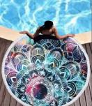 曼荼羅模様 フリンジ付き円形ブランケット 150cm