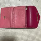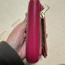 レザー製の折りたたみ式キーケース、ピンクとレッドのコンビネーション。