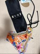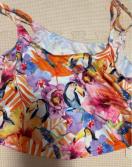 トロピカルな鳥とハイビスカスの柄が、水辺に映えます。