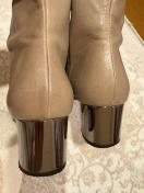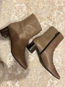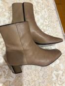 一昨年、店頭で27,000円で購入、23.5センチ、ショートブーツ。箱はもらわなかったのでありません。グレージュのようなニュアンスカラー。色合いが絶妙で即買いしました。レザーです。合革の良さもありますが、やはりレザーもののブーツは風合いが違います。お出かけ時に数回(5回くらい)着用、綺麗な状態です。また、一回の着用時間は3時間くらい、1日中履いて歩いたシチュエーションはありません。ヒール部分がおしゃれですよ。気に入ってますが玄関をリフォームしたことで収納が少なくなってしまい、思い切って出品しました。お探しの方、ダイアナお好きな方いかがでしょうか。黒のブーツとは違う雰囲気でおすすめです。靴も値上がりしており、レザー素材のブーツは余計に高い印象です。販売時、雑誌掲載されており、着用画像は着用時のご参考まで。定形外920円、またはゆうパック発送予定、ノークレームノーリターンでお願いします。師走に入ると気忙しくなり長期に渡っての出品ができないため最初から格安出品しています。締切日時