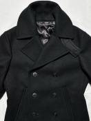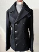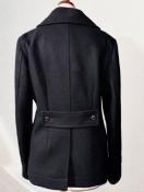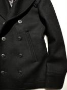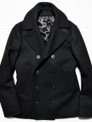 ダブルに連なる大型ボタンが目を惹くピーコート型