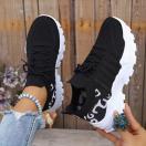 ノーブランド スニーカー 女性用 軽量のクッション入りジム・ランニング・ウォーキングテニスシューズ オールブラックのロートップレースアップデザイン 通気性のあるファブリックアッパー&滑り止めPVCソール ワークアウト/旅行/日常用 安定感抜群のプラットフォーム オールシーズン対応フィットネスシューズ スポーティなデザイン 快適履き心地 ジム愛好家向け