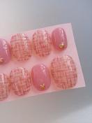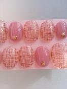 売り切り値下げ ジェルネイル スモーキーピンク&ツイード柄 ショート
