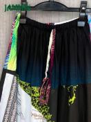色々な色のアジアン柄(植物、ペーズリー、羽根柄など)生地を使ったパッチワークフレアスカートです。