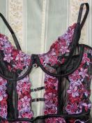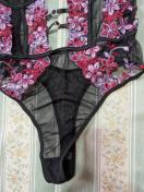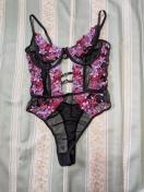 1094 最高級品 ブラック&パープル刺繍のセクシーなボディースーツ L
