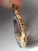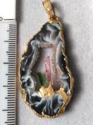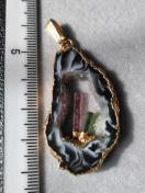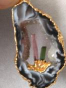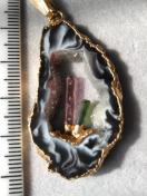 美しい、模様のきれいなスライスメノウに天然トルマリン柱が二本加工でひっつけてあります。
