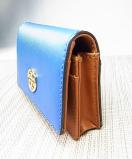 【色味】 外側は鮮やかなブルー(青)と、差し色のブラウン(茶色)のバイカラーです。ダブルTロゴの金具はゴールドです。