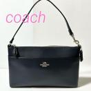 美品 COACH コーチ レザー ワンハンドル ハンドバッグ ミニバッグ マルチポーチ レディース ネイビー