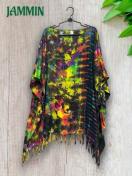 黒色ベースのタイダイフリンジポンチョです。