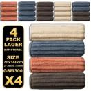 バスタオル4枚セットストライプ柄超吸収速乾70×140cmシンプルおしゃれ日用品肌触り柔らかお風呂場に嬉しいフック付き