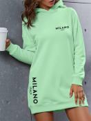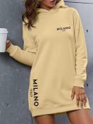 【レディース】オーバーサイズ フード付きスウェットシャツワンピース - 長袖 冬 暖かい ルーズフィット カジュアル プルオーバー "MILANO" レタープリント & コントラスト