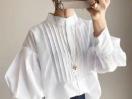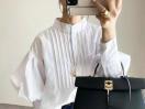 全体的にシンプルなデザインになっていますが、胸元の縦のストライプが可愛いシャツです。一枚で着ても◎ シャツやジャケットのインナー としてもアクセントになっておしゃれです。チュニック のように着こなしていただくのもおすすめです!