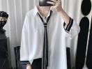 トレンドのビッグシルエットがおしゃれな ネクタイ付き シャツです?1着でおしゃれに決まります!パンツは細身のシルエット や ブラック や グレーの テーパード パンツ がおすすめです!足元は ドレスシューズ や ブーツ はもちろん、スニーカー や サンダルで崩しても◎原宿系 や キレイめ、モード系がお好きな方はぜひ!締切日時