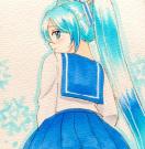 自作イラスト/2枚/雪ミク/パンチラ/うつ伏せ