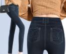 裏地暖か素材のデニム風レギンス。
