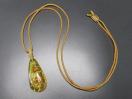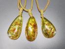 良質貴重天然石アンバー琥珀しずく形糸ネックレス大きいサイズ金運