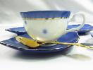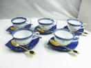 展示品 陶彩 翠泉 コバルト水玉 デミタスコーヒーセット カップとソーサースプーン5点セット