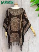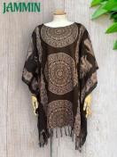 アジアンな象さん紋様柄のフリンジポンチョです。