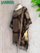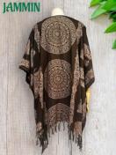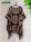 象さん紋様柄フリンジポンチョ ブラウン エスニック ヒッピー アジアン アフリカン