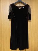 リボンと袖のシフォンで女性らしい雰囲気をだしつつ、光沢のあるベロア素材で甘さのあるシンプルでエレガントなパーティードレスです。