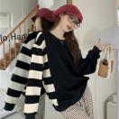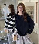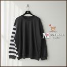 〜3L4L5L*左右非対称モノトーンボーダー柄プルオーバー*