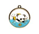 544 レトロ調パンダのサークルチャーム 1個 アクセサリーパーツ エナメル 金属 円形 ぱんだ 動物