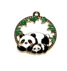 541 親子パンダのサークルチャーム 1個 アクセサリーパーツ エナメル 金属 円形 ぱんだ 動物