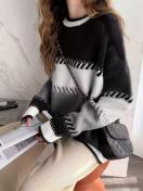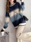 レディース秋セーター、フォールファッション カラーブロック ドロップショルダー 長袖ニットトップ