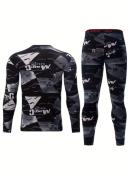 2枚セット メンズ スキー&冬用 サーマルアンダーウェアセット - 全身保温 スリムフィット 長袖ベースレイヤーボディスーツ (アンダーウェア) - 寒さ対策必須アイテム, 手洗い可, 無地, ラウンドネック