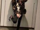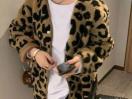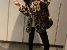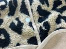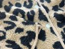 レオパード柄のボアのモコモコ感がかわいいノーカラージャケットです。