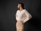 このスカートは、カジュアルなTシャツやエレガントなブラウスとも相性抜群。スニーカーでラフに、またはヒールで女性らしくコーディネートするのがおすすめです。