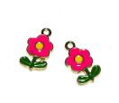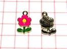 521 葉っぱつきのお花 2個 植物 金属チャーム エナメルパーツ