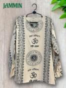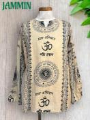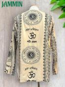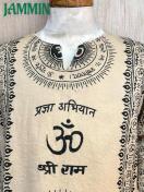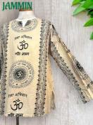 アジアンな柄(オーム、紋様、仏陀跡、ヒンディ語、植物柄など)の長袖クルタです。