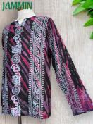 アジアン柄(オーム、仏陀足跡、紋様など)入りのタイダイ長袖クルタです。