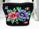 【色味】★お色見は、本体がシックなブラック(黒)です。 ★フラワーモチーフはレッド、ピンク、パープル、グリーンなど、カラフルな配色です。 ★ファスナーつまみや金具はゴールドカラーです。